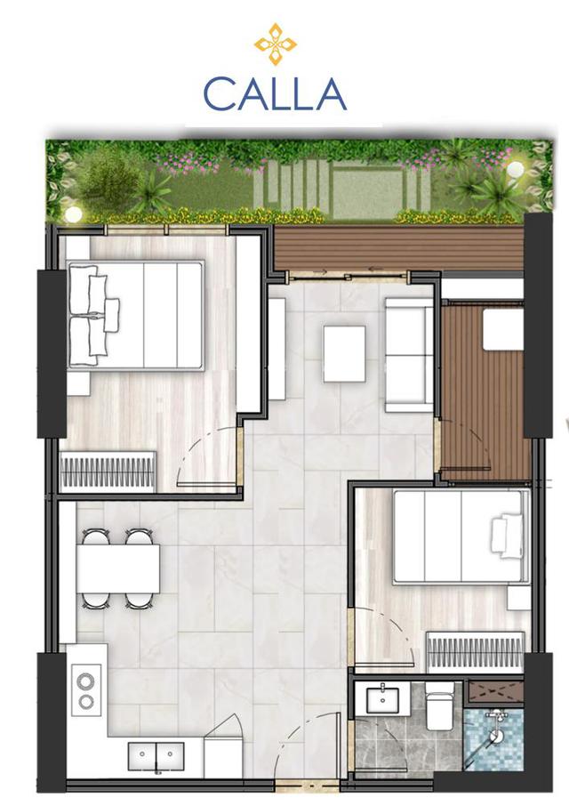 Tất cả các căn hộ được thiết kế đều có lôgia, đem lại sự thoáng sáng, tràn ngập năng lượng cho căn hộ. Diện tích mặt sàn dao động từ 39 đến 82m2 với đủ loại căn hộ từ 1 phòng ngủ tới 3 phòng ngủ đa dạng về hướng nhìn về biển, núi,... Đặc biệt, Calla Apartment còn dự án tiên phong cho căn hộ sân vườn phục vụ cho giới "sành" bất động sản và mong muốn có một "chốn đi về" cực kỳ lý tưởng.